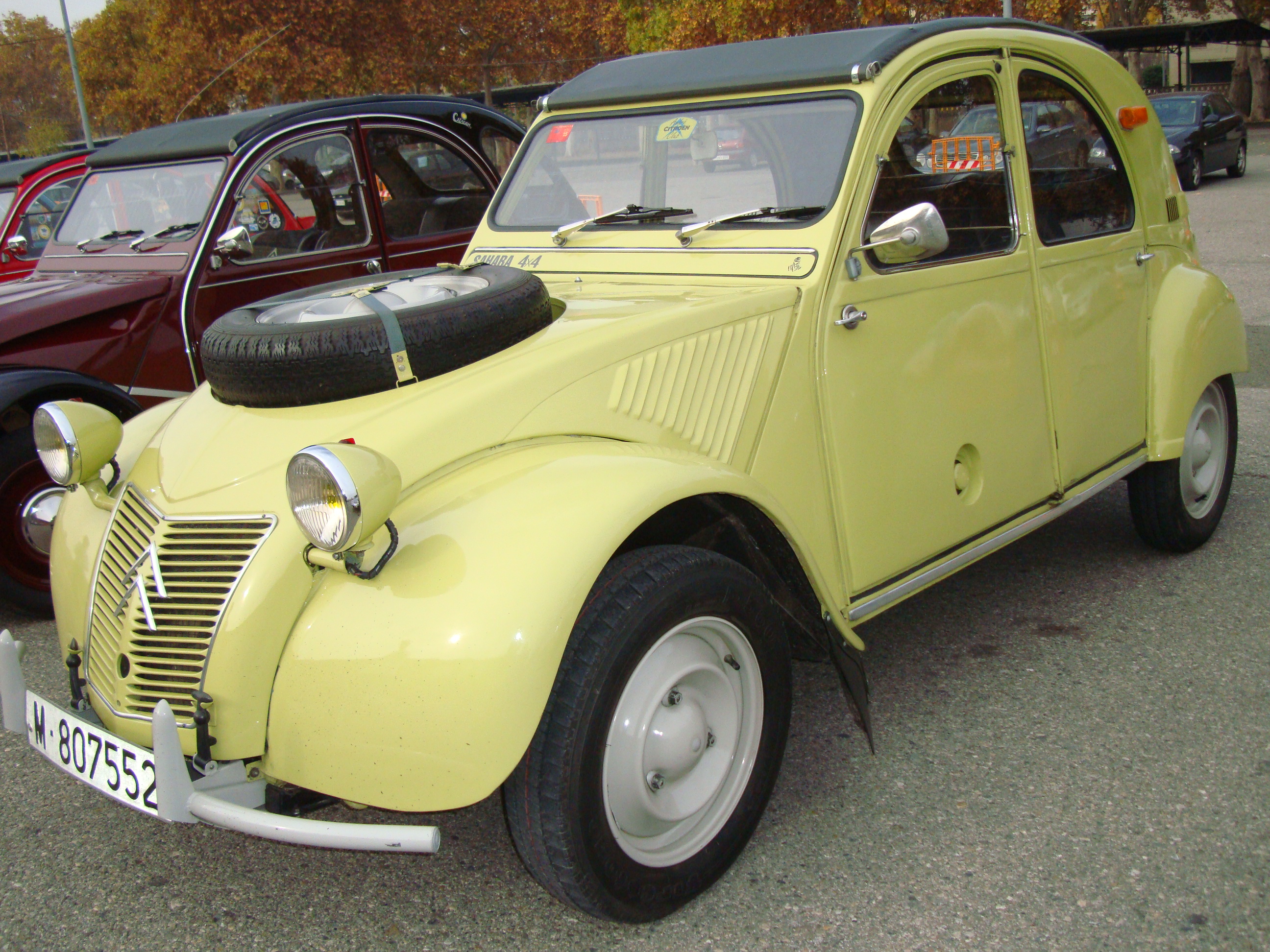 El cotxe més singular de la trobada ha estat el Citroën 2CV Sahara, presentat oficialment al Saló de l’Automòbil de París de 1958, després de comprovar l’empresa l’efectivitat de l’invent i decidir produir-lo en sèrie. Donat que Citroën no tenia en aquell moment un motor petit i lleuger amb suficient potència per moure un 4×4, va decidir implantar un segon motor al maleter com a solució idònia. Els dipòsits de benzina (un de 15 litres per a cada motor) es van situar sota els seients davanters; en total es van produir 799 unitats fins al 1967.