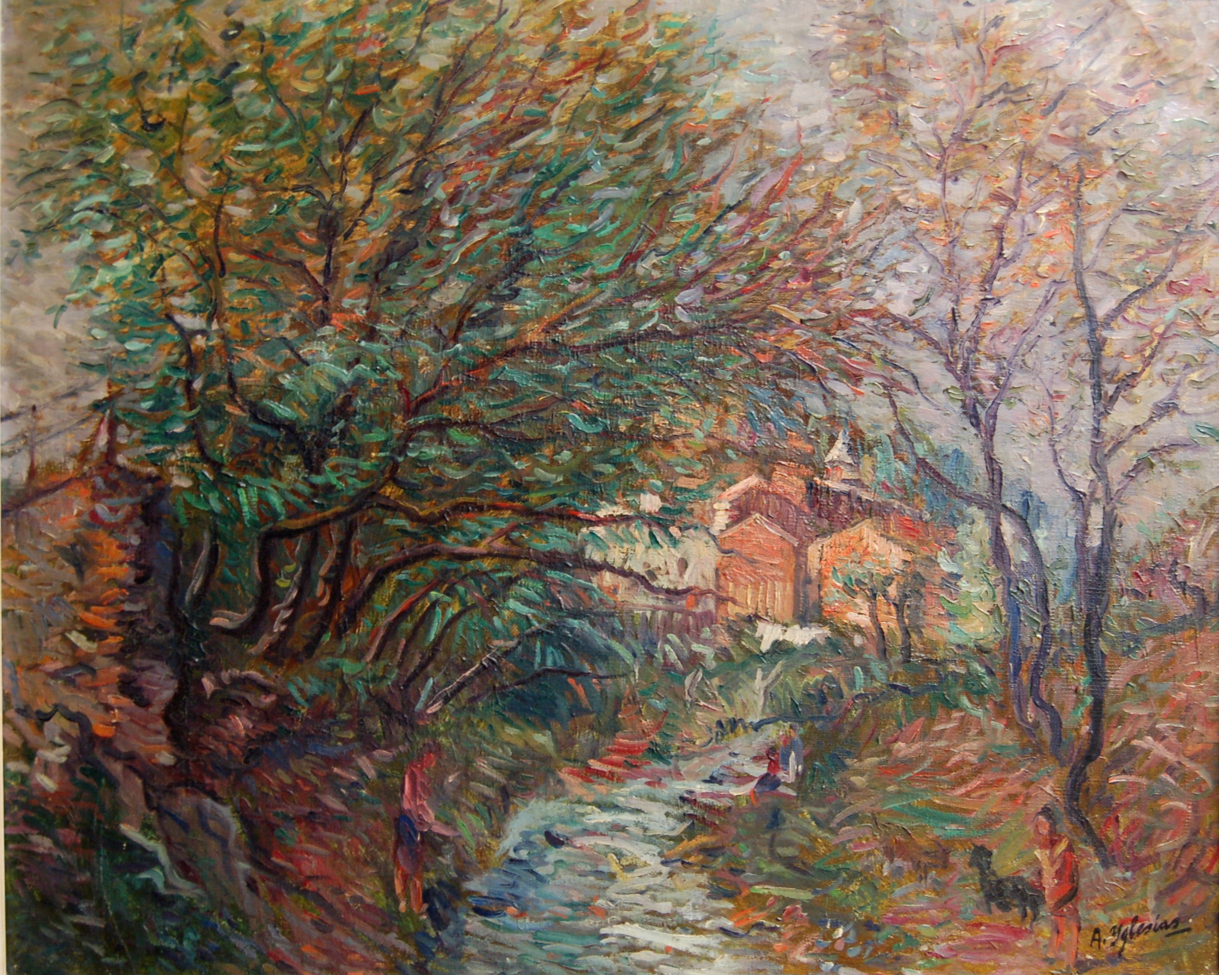 Otro pintor que queremos recordar es Alfons Iglesias y Domènech, hijo de Les Borges Blanques (1894-1975) y fundador del grupo «Nuevo Ambiente» que se estrenó en las galerías Dalmau de Barcelona. De joven, cuando llegó a Barcelona, frecuentó tanto la Lonja como el estudio de Isidre Nonell, la escuela de Galí, la Escuela Libre de Dibujo y Pintura o el Ateneo Obrero. Todas estas vivencias le aportaron un gran número de amistades y de inquietudes. Tras la Guerra Civil se encerró en Les Borges Blanques, lejos de las apariciones públicas y del llamado mundo artístico. Integrable en la tendencia «constructivista», practicó un paisajismo colorista y de pincelada vibrante con aires de Cézanne.