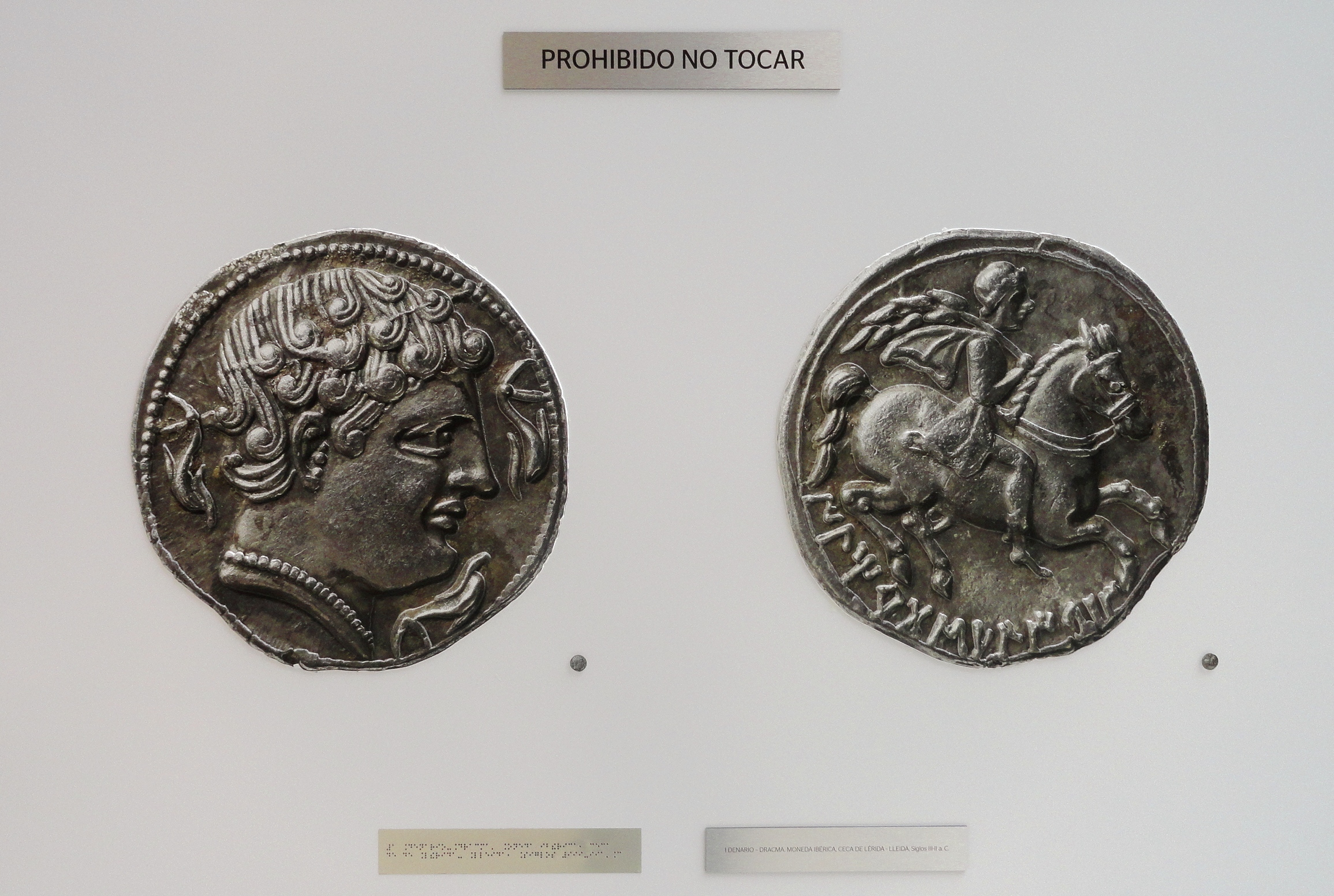 Los responsables del Archivo Histórico de BBVA pretenden que los visitantes -sobre todo los que tienen alguna deficiencia visual- interactúen con la exposición y puedan tocar monedas y un billete de relieve, reproducidos en gran formato con tecnología pionera que duplica de relieve este medio de pago y permite que las personas ciegas puedan tocar y saber cómo es. Se trata de unas reproducciones a gran escala de tres monedas catalanas de la colección numismática de BBVA de entre 40 y 60 centímetros. Habrá un denario-dracma acuñado en Iltirta (Lleida) en los siglos III-II aC Otra es un triente visigodo de Recaredo acuñado en Tarraco (Tarragona) desde el año 586 al 601 d.C. Y finalmente, un croata acuñado en tiempos de Enrique IV en Barcelona en el siglo XV.